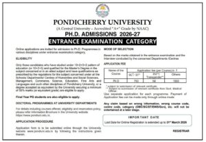 Online applications are invited for admission to Ph.D. Programmes in various disciplines under entrance examination category.